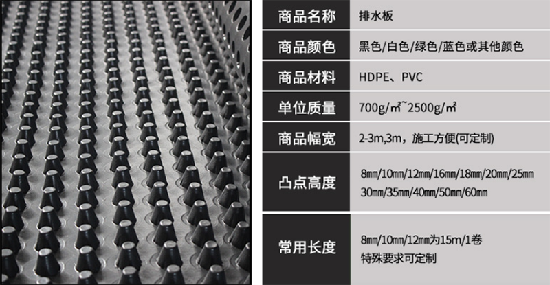 防水排水板特點: